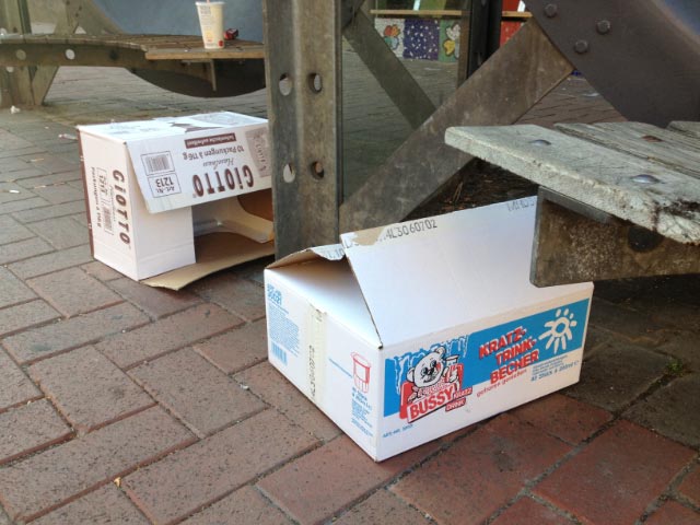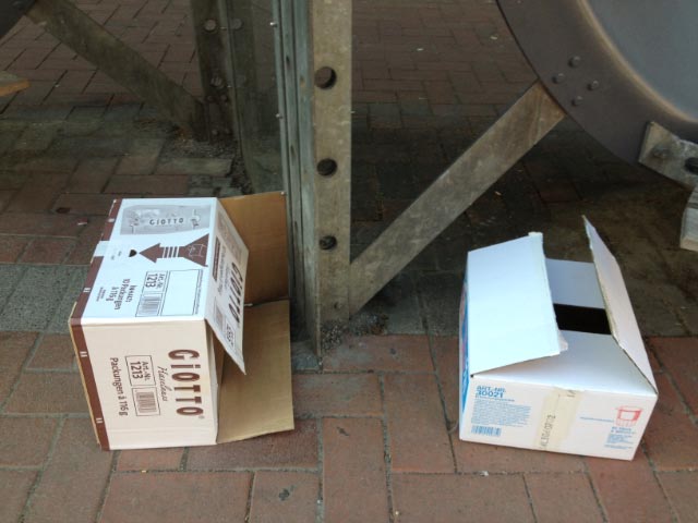 Wir haben zwar einen großen, lauschigen Garten mit altem Baumbestand und die Miteigentümer bauen eine Sitzgruppe nach der nächsten auf und legen überall Blumenbeete an, aber da gehen wir nie rein in diese Idylle der Bürgerlichkeit. Unser neustes Hobby ist es nachts zuhause anzukommen und uns auf den Spielplatz gegenüber unserem Haus hinzusetzen und dort den Sommer zu genießen und das Treiben an der Haltestelle und auf der Straße auf uns einwirken zu lassen. Freitag war Hiphop DJ und B-B-Q im Faustbiergarten angesagt, aber der armseilige Wurststand der dort aufgebaut war, machte jede kulinarische Hoffnung zunichte und wir gingen statt dessen ins Da Etna. Nach dem erfolgreichen Besuch bei unserem derzeitigen Lieblingsitaliener in Linden, der Kellner war an diesem Abend sehr aufgeschlossen und erzählte viel über sein Privatleben, Urlaub, Beziehung, Mutter usw. (das kommt in Hannover immer sehr plötzlich; 2 Jahre lang wird kühle Distanz bewahrt und dann auf einmal, ohne Vorwarnung ist das Eis gebrochen und man gehört zur Familie), kehrten wir nach Hause zurück und taten wie oben beschrieben. Spielplatzlounging. Es gab so einiges zu sehen. Am besten gefiel uns eine junge Frau mit schwarzen Lackstiefeln und einem Koffer, die lange an der Haltestelle wartete, so dass Stephan meinte, wo will die hin, Nachtzug oder Nachtflug? Es war mittlerweile ca. 23 Uhr. Wir haben dann beschlossen, dass sie eine mobile Domina ist, die Hausbesuche macht und in dem Koffer sind die Utensilien. Wer trägt sonst kniehohe Stiefel bei dem Wetter? Noch besser war eine verhaltensauffällige Frau mit langem Haar, mittleren Alters, die einen Giotto-Karton unter dem Arm hielt und die ganze Zeit nervös an ihrem Hals herumnestelte. Auf einmal ließ sie den Giotto-Karton stehen und ging nach gegenüber zum Kiosk um mit einem zweiten leeren Karton unter dem Arm zurück zu kehren. Stephan meinte, Kartonfetischistin. Am nächsten Tag musste ich jedoch feststellen, dass die Gute beide Kartons an der Haltestelle zurück gelassen hat. Das gibt also noch mehr Rätsel auf…..Wenn jemand was dazu weiß, bitte melden.