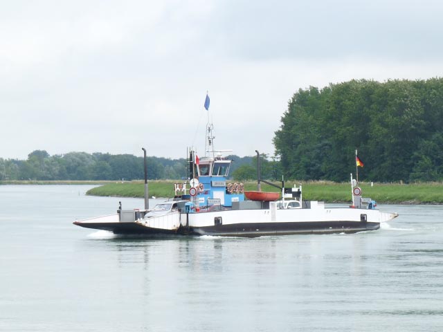 Irgendwie wissen wir nicht, was wir tun sollen und rufen meine Eltern an, mit denen wir uns an diesem Wochenende treffen werden um zu erfahren, dass ihr Navi sagt, dass sie in 21 Minuten bei uns seien werden. Sie holen uns ab. Sonst hätten wir auch schlechte Karten hier irgendwie weg zu kommen, so ohne Auto. Wir fahren dann zu den Gastgebern, die uns eingeladen haben. Andreas, ein entfernter Verwandter von mir väterlicherseits, feiert seinen 50igsten Geburtstag nach. Die Feier ist Morgen, am Samstag. Erst mal sitzen wir bei den Gastgebern auf der Terrasse und trinken leckeren Sekt mit Foto des Jubilars auf der Flasche und dazu gibt es einen selbstgebackenen Hefekranz seiner lieben Frau. Meine Mutter muss Handnäharbeiten für mich erledigen, die ich ihr mitgebracht habe. Dann müssen wir schon los. Der Sohn des Hauses muss als Fahrer herhalten. Wir sind bei meiner Cousine zum Aperitif eingeladen. Sie zeigt uns ihre Wohnung und macht Aperol Spitz, vier weitere Verwandte, aber mütterlicherseits aus Gernsbach (Ort in der Nähe) darunter meine Cousine aus England und ihr Freund sowie der Hund Bean, die dort zu Besuch sind, stoßen zu uns. Dann müssen wir im Bechters Lamm anrufen, um zu melden, dass unsere Ankunft sich verzögern wird, wir also verspätet kommen werden. Beim Eintreffen in der Gastwirtschaft mustert mich die Chefin, die schwarz-weiß kariert zu einem langen Rock trägt von oben bis unten sehr griesgrämig, aber ich mag Leute, die Emotionen zeigen und so freunden wir uns schnell an, zumal Essen und Wein sehr lecker sind und von mir gelobt werden. Alle unterhalten sich gut in dieser ungewöhnlichen Konstellation und plötzlich sind wir die letzten Gäste und müssen zahlen und uns verabschieden. Grob verabreden wir uns mit meinen Eltern für den nächsten Tag, weil sie auch was unternehmen wollen. Sie schlagen Baden-Baden vor, aber ich will rüber nach Frankreich. Gesüßte Kondensmilch in Tuben im Supermarkt ist mein Ziel und zwar am liebsten die von Regilait. Sie lassen mich bestimmen, wie ein Einzelkind, was ich in dem Moment auch bin und die Gastgeber schlagen uns die Rheinfähre vor.