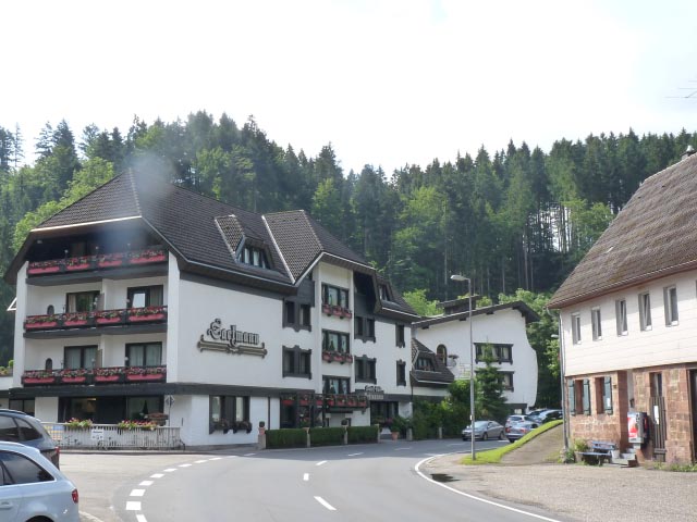 Im Bühler Tal angekommen nehmen wir uns ein Taxi mit dem Kennzeichen RA NZ 66. Das gefällt mir. Die Frau fährt uns zu unserem Hotel Rebstock und ich sage nach einigen Minuten des interessiert aus dem Fenster Schauens: hier sieht es aus, wie in einer 80er Jahre Ärztesendung. Wir hieß das noch mal. Sie weiß es: die Schwarzwaldklinik. Das Hotel ist am Waldesrand gelegen und umringt von Landwirtschaft, aber keine Tiere. Das braucht man hier nicht so, zumal alles wächst wie im Urwald und die Kirschen Ende Juni schon rot sind. Gegenüber gibt es frische Himbeeren und Stachelbeeren und Kirschen sowie Erdbeermarmelade und eine Kasse für das Geld. Ich hole 2 x Himbeeren (á 2,- €) und eine große Erdbeermarmelade zu 2,50 €. Ich werde zwar mit selbstgemachter Marmelade verwöhnt von Mutter und Schwiegermutter und auch Marmeladenleihmütter (Mütter von Freundinnen), aber eine reine Erdbeermarmelade gehört hier nicht zum Programm. Bei meiner Mutter werden Früchte aus dem Garten verarbeitet, sehr lecker zum Käse ist das Vogelbeergelee oder von mir gerne genommen Sauerkirsche (SK 09 steht dann zum Beispiel auf den Gläsern) und meine Schwiegermutter macht überwiegend Mischtypen, die auch nicht zu verachten sind.