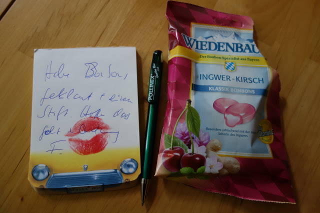 Weil ich hier schon mal gewohnt habe, fühle ich mich wie zuhause und mache mir Kaffee und einen Ingwertee und schnüffele in der Küche herum bis ich den leckeren Rohzucker, Farin mittel oder wie das heißt in den großen 2 kg Gewerbecontainern finde. Ich hatte meine Tür mit „intravaginale Bestrahlung“ beklebt und der Lackschaden ist heute noch sichtbar.