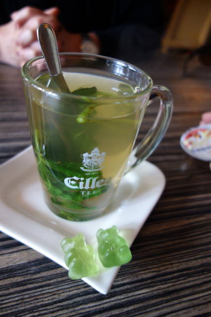 Erst lassen wir uns anfüttern mit Gummibärchenmaterial und kaufen gleich (Waldmeisterbärchen und Rosen) und dann ein Strickladen, wo ich überteuert für 7,50 € ein gehäkeltes, gelbes Seepferdchen kaufe. Kaffee beim Franzosen, Kaffee gut, Backwaren schlechter als im türkischen Backshop in Berlin, aber lieb dekoriert mit Körben usw. Aufmachen ist alles, gerade in Hamburg. Claudia darf doch nebenan nicht aufs Klo, obwohl ein Bekannter, der ebenfalls Kaffee trinkt, ihr sagt, die seien ganz nett. Aber nicht zu ihr. Wir überlegen mal zusammen nach Tel Aviv zu fahren. Schön Strand und Bauhaus und lecker Essen. Ich verwechsele das erst mal mit Tel Aviv, der Strandbar in Wien und behaupte, wir seien schon da gewesen und es war sehr nett. Stephan lauscht amüsiert unserem Missverständnis. Dann Rotes Kreuz (Kiloladen), da will ich hin). Ich kaufe auf den billigen Seite 4 Teile für 4 €. Ein langärmeligen BW-Pulli, bei dem man die Eule auf meinem Kleid sieht, aber ich nicht mehr frieren muss und selbstgestrickte Kinderfäustlinge in den spanischen Farben, asymmetrisch. Die sind toll und sprechen mich gleich an. Das gibt ein prima Hütchen mit dem Seepferd. Dann noch ein Rock in rosa-lila-blau mit etwas weiß kariert (mal sehen, ob der getragen wird) und ein Gretarschloch T-shirt „Lieber ne Flasche Bier als Freund, als ne Flasche als Freund“. Dann Tee kaufen bei Claus Kröger und teure Schokolade. Die Flaschendeko im Schaufenster stürzt ein im Dominoeffekt. Auch nicht schlecht, etwas Unterhaltung fürs Geld. In der Sonne ist es warm. Viele sind mit Kindern und Kinderwagen unterwegs, verstehen aber keinen Spaß. Claudia will zu H & M und ich sage „nein“, sie kauft doch wieder ein schwarzes Kleid und davon hat sie genug. Ich bin auch eine fiese Freundin. Dann gehen wir zum Vietnamesen, aber statt dem bewährten „Wild Rice“ einen neuen, der empfohlen wurde, „Green Papaya“ und die würzen mit Maggie. Claudia ist entsetzt. Der Minztee mit Honig schmeckt gut.