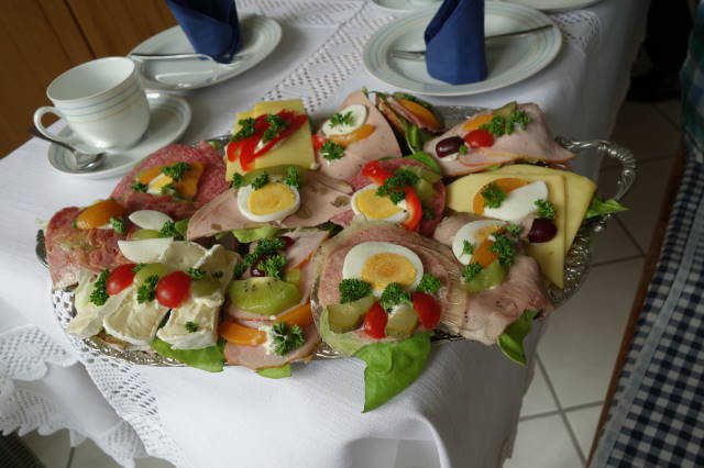 Der Vater und Schwiegervater fliegt aus der Küche. Meine Schwiegermutter und Schwägerin machen Schnittchen. Der Konfirmand hatte sich Rehrücken gewünscht und als es nun Spargelmenü geben sollte, wollte er wenigstens einen süßen Rehrücken und das war schwieriger als gedacht, aber die Frauen in der Familie haben alles getan um seine Wünsche zu erfüllen.