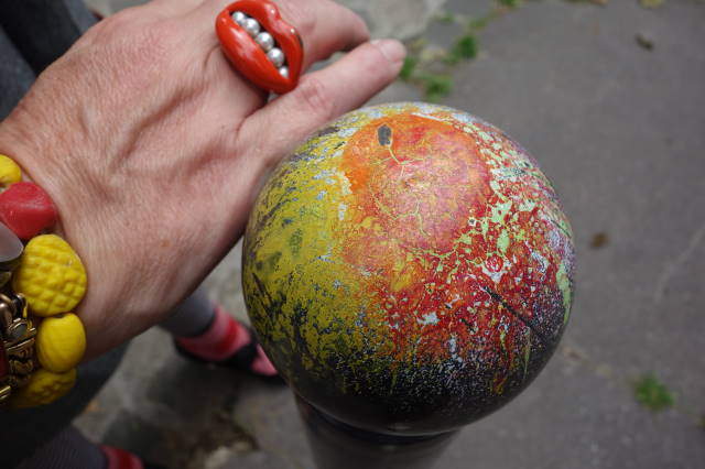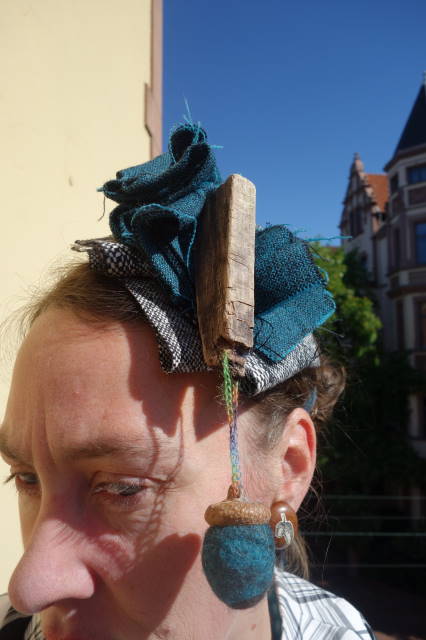 11.06. Ich trage Pudding an den Ohren. Die neuen Ohrringe mit Schlüsselbundanhängern aus Paris dazu eine ganz tolle Wickelblusenkreation meiner Freundin Heike. In ihr „Für die Liebe sterben“ Jacke bin ich derzeit auch richtig verknallt und trage sie täglich, soweit man eine Jacke benötigt zur Zeit.