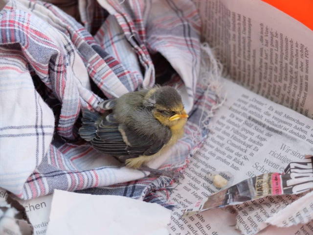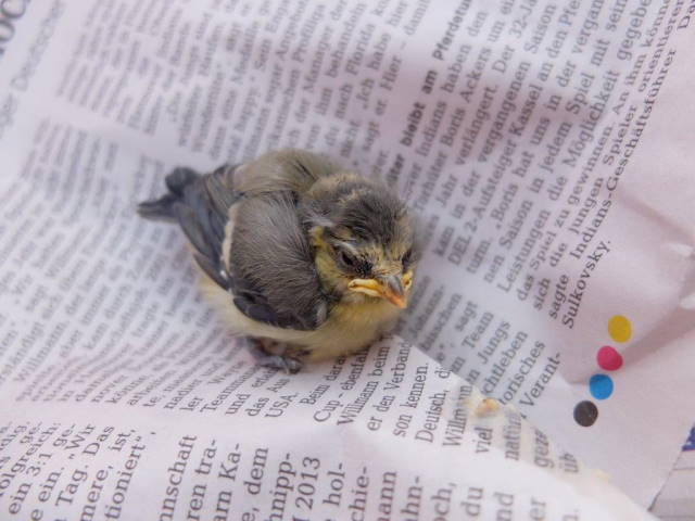 Michi hat ein Vogelbaby in Hannover mit Katzenfutter gepäppelt und schickt ein Bild und wir schicken ihm ein Bild von unserem Vogelbaby vom Balkon der Berliner Wohnung (Wohnung und Balkon sind leicht verwahrlost, was uns aber nicht stört). Ob er uns Tipps geben kann für unseres.