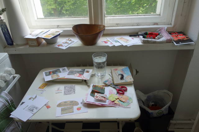 22.05. Böse email an meine Cousine, die sich tagelang nicht meldet und ich sollte interfamilär für was Juristisches eingespannt werden. Werde um 6 wach und das Dots hat noch 1 Std und 45 Minuten geschlossen. Jetzt hat es schon seit 8 Minuten geöffnet, Stephan schläft, ich habe Balkontisch in die Küche geschafft zum Basteln und sauber gemacht. Krass. Ich verarbeite die Gernsbach-Motive, die ich mitgebracht habe und dort habe ich Straßburg gemacht, praktisch immer eine Reise nachhinken bzw. es vermischt sich. Dann Dots.