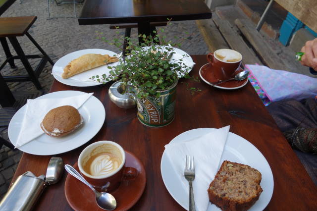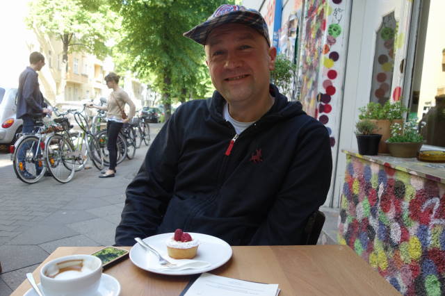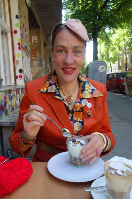 Nummer meiner Cousine eingeben funktioniert nicht. ich hasse mein i-phone. Neuer Korb ans Fahrrad, muss ihn noch mal justieren lassen, weil ich sonst auf dem Draht sitze und das nicht aushalte (dafür bekommt der Fahrradtyp Baklava). Der türkische Bäcker mag mich und ich sage ihm, dass ich jeden Tag 1 kg von seinem Zeug esse. Das sieht man nicht, ist seine Reaktion. Sehr charmant. 2 x frühstücken. Das neue Café heißt Kathies Blue Cat und während im Dots die jungen Hipster und Eltern arbeiten, arbeitet hier die Belegschaft von Pride. Es gibt butterige englische Backwaren, Shortbread und Pastries mit Cheddar. Hipster kannte Constantin noch gar nicht, die neue Bevölkerung seines Kiezes. Die neue Hipstermännerfrisur ist ein Dutt und darunter die Haare wegrasiert.