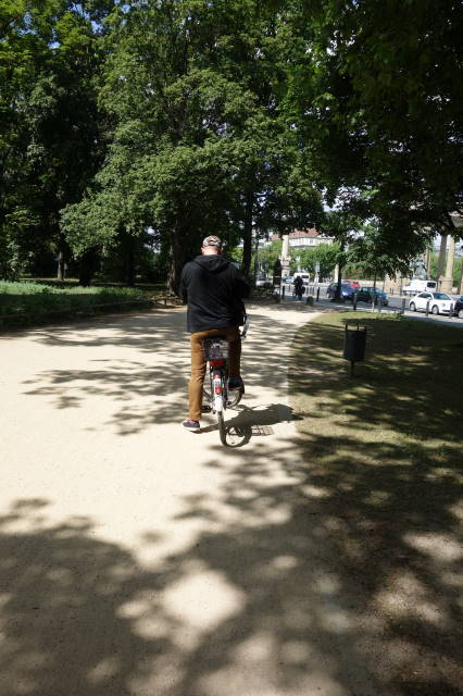 Charlottenburg. Weiß jetzt, warum das Tiergarten heißt. Hat Tiere drin. Ein Typ mit rotem T-Shirt mit HANNOVER drauf kommt uns entgegen. Unterwegs in Berlin. Halte immer an auf dem Rad und telefoniere. Etliche lassen sich vertrösten, auch wegen des kürzeren Zeitraums bis zum Rückkehr. Ich bedanke mich für das Verständnis. Der Akku des Handys lässt nicht nach und übersteht die Berlinreise insgesamt. Hammer. Ich liebe den alten Knochen und würde glatt tauschen.