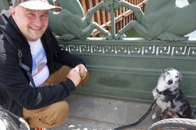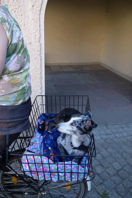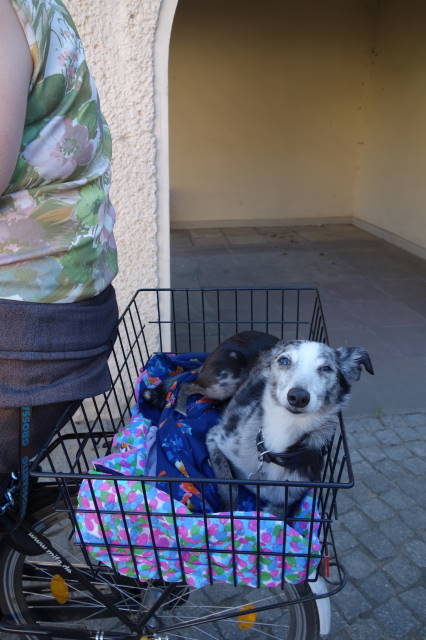 Im Haus ein Geigenbauer. Suki kläfft das ganze Haus zusammen. Wir ziehen mit ihm los. Viel Verkehr und er an der Leine am Rad und zieht kräftig. Er kann derart Menschen lesen und manipulieren, das ist unglaublich. 10 Sekunden an der Ampel reichen um einzuschätzen ob er mit kleinen unterdrückten Bettelgeräuschen einen Effekt erzielen kann. Baustelle Markus.