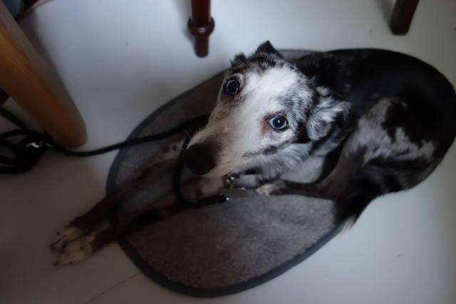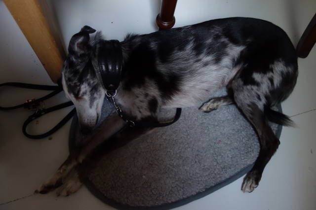 Suki war wohl mit der anderen Sitterin auf einem Radausflug und ganz flatterig. Wurde zum Tierarzt gebracht von den Hundemuttis und die Diagnose lautet: schwerer Muskelkater. Wir haben es also geschafft, dem Windhund Muskelkater zu machen.Die Geschichte finden alle lustig.