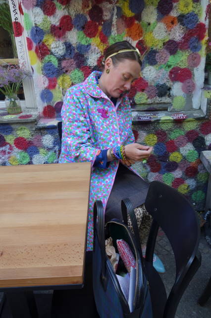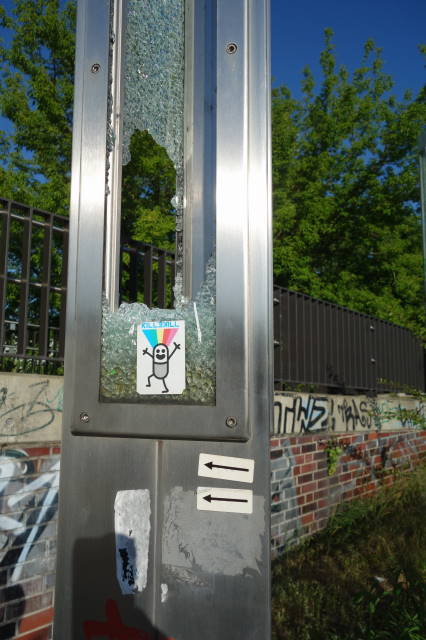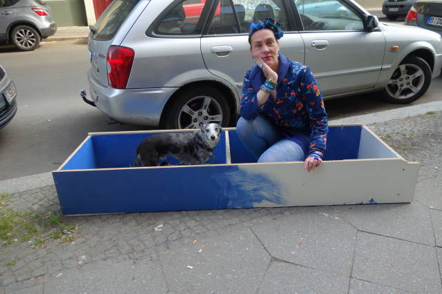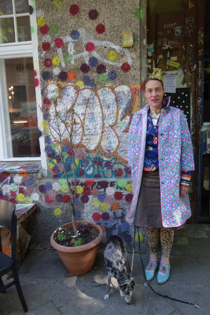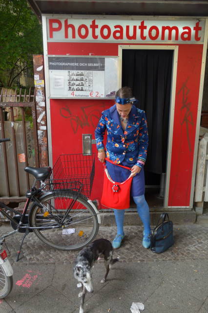 Dieffenbachstraße. Der Ort, der daran erinnert, wie ich in meiner zarten Jugend Sterblichkeit gelernt habe. Kottbusser Damm. Neue Leggings, krasse Muster und eine schwarze mit Aufschrift: HOMIES. Der türkische Inhaber will mit mir flirten über meine Umweltbewusstsein und Yoga sprechen und über die türkischen Frauen lästern, die immer zu viel zu essen kaufen und es dann selber essen und davon dick werden. Seine Frau kocht die Eier immer im Topf statt energiesparend mit dem Eierkocher. Was soll ich sagen? Dazu kann man nichts sagen. Dann Kreuzberg. Bergmanntsraße. Der schwerbehinderte Mann setzt sich zu uns auf die Bank und gibt uns Tipps. Zopf und sieht aus wie Hippie, will aber über die Türken lästern, die zu viel grillen und es stinkt. Unsere unfreiwilligen Reiseführer sind immer rassistisch, ob Wien oder Berlin. Karneval der Kulturen. Das hat er einmal geguckt und die Schwarzafrikanerinnen in den weißen Kleidern, das war schon toll, aber jetzt sperrt er die Tür zu. Er hat Freunde zu Besuch und kocht Kaninchen. In Hannover war er in den 50ern in einer Kaserne in Langenhagen. Die Second Hand Läden sind alle scheiße. Nur Verleih oder Kik gibt es in dem ersten, dann eine unkoschere Mischung aus Second hand- und Neuware. In dem Kiloladen finde ich eine rote Frotteetasche mit weißem Plastik gefüttert, original alt, könnte man für nachgebaut halten, gerade die stilisierte Blüte als Verschluss, aber das Etikette beweist das Gegenteil und dann noch halber Preis und eine kariertes Sakko aus Poly (weinrot, beige) aus England?, was mein neues Lieblingsteil wird, also doch. Es gibt sogar einen, der nur 80er Jahre Hipstersachen hat. Alles mit Punkten und dann die alten Sportklamotten und Ghettoblaster natürlich. Die Bedienungen tragen alle Hochwasser, bauchfrei und Brille. Im Malteser Laden kaufe ich schließlich kleine Plastikschildkröten und eine kleine Stoffkatze mit blauen Augen. Man soll an der Kasse sagen für was man spenden will, ob Schulprojekt oder Hundebesuchsdienst. Was, die sind hier so überkandidelt in der Hauptstadt, dass sie für die Hunde noch einen Besuchsdienst vorbei schicken. Verstehe ich falsch, die Hunde sollen besuchen im Altersheim und so. Ach so, das finde ich doch gut. Dann hatte ich schon die Schule gewählt. Auch gut. Nächstes Mal. Ja, wird es nicht geben.