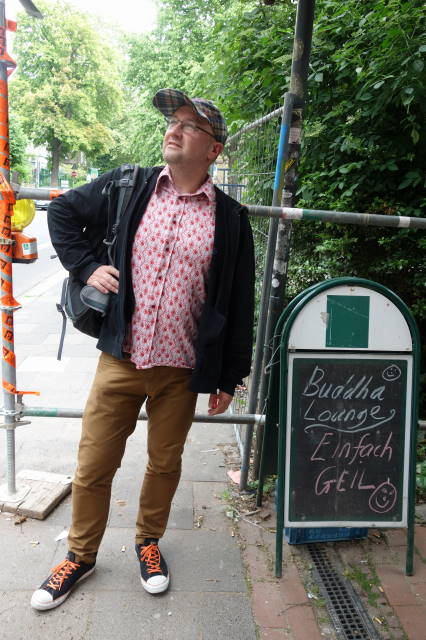 Ich kaufe geröstete Nüsse und eine Leiche wird auf der Sonnenallee abgeholt. So was haben wir beide noch nicht gesehen, wie eine Liege für Kranke auf Rollen und man kann sie hoch stellen nur, dass der Kranke komplett in einem blauen Sack von der Gerichtsmedizin abgeholt wird. Die haben T-Shirts mit entsprechender Beschriftung und aus den Abdrücken in dem Sack erkennt man die Umrisse eines menschlichen Körpers. Gruselig irgendwie. Abends asiatisch auf der Straße mit Markus. Dr. To oder so? Die Menschen, die an uns vorbei gehen sind alle jünger als 30. Die selbstgemachten Teigtaschen (Dim Sums) sind köstlich und die Cocktails auch. Nach 2 Cocktails positioniere ich mich und ergreife in einem Partnerkonflikt Partei. Diese ganze Neutralität. So wird die Welt doch nicht regiert und bei Star Wars ist man auch auf einer Seite und ich stelle mich hinten den Kollegen und bin auf seiner Seite und das können die ruhig wissen, auch wenn es taktisch unklug sein mag. Suki ist wie ein übermüdetes Kind und rennt kopflos umher und findet uns nicht. So läuft er noch auf die Straße, muss dann mal an die Leine und schlafen.