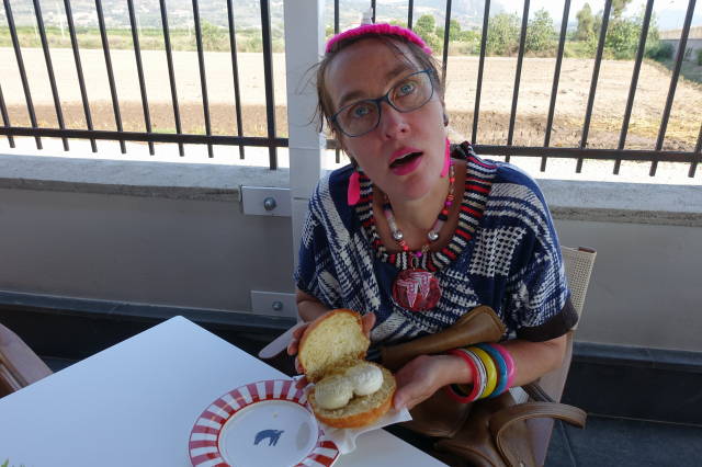 Erste Kontakte mit Büffelmilchprodukten (als Eis mit Brioche) und leckeren gefüllten Sachen zum Aufklappen