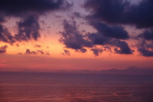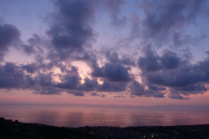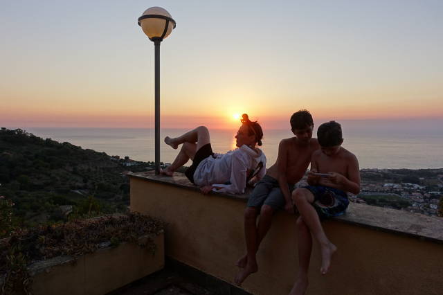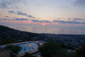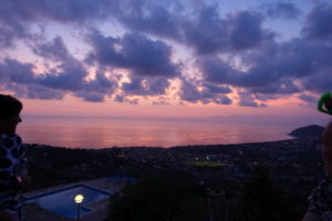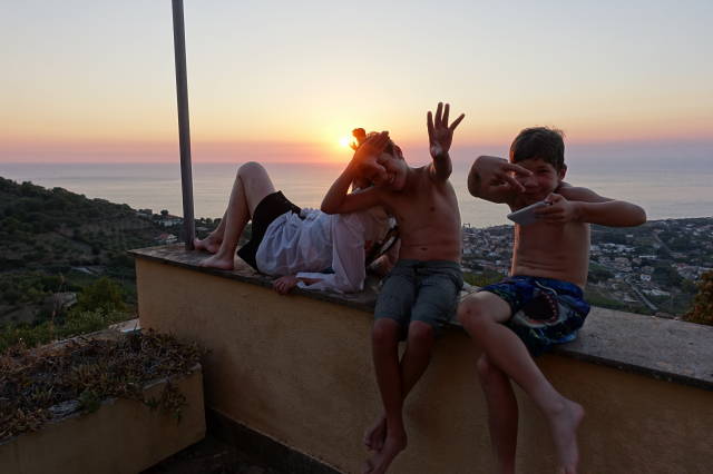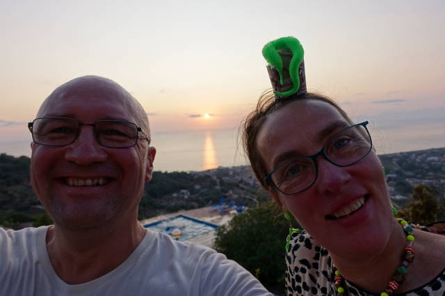 Die Filmkulisse und pünktlich um 19:30, der Sonnenuntergang der jedes Mal schön ist und manchmal atemberaubend