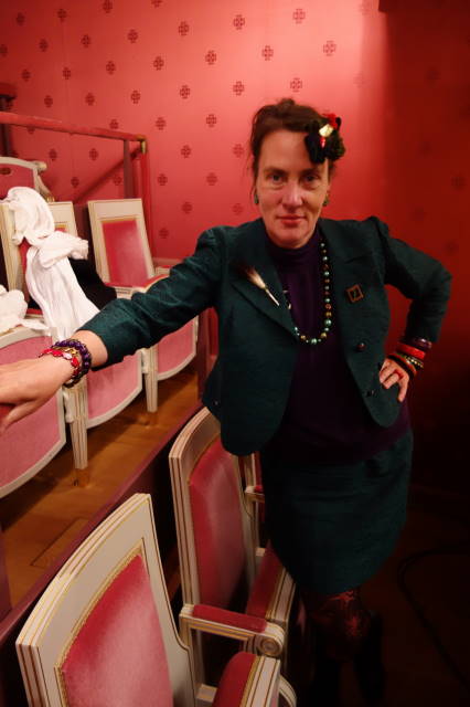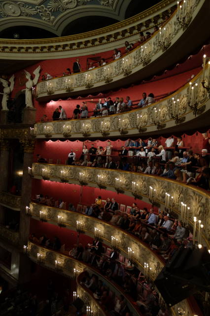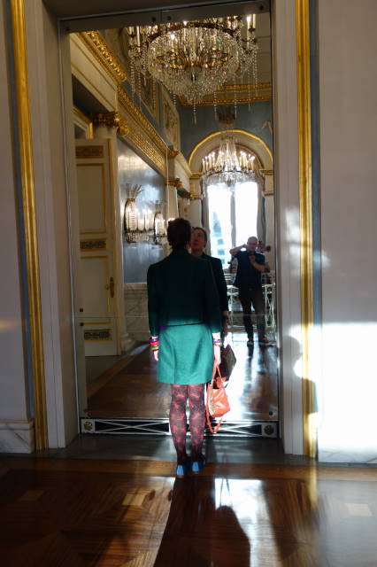 Als wir die Karten abholen gehen die Operngäste schon reichlich rein. Hier in der Straße war mal die Boutique von Herrn Mooshammer und das Porträt von ihm und Daisy stand im Schaufenster. Treffen Klaus gegenüber im Spaten, am Platz direkt, nicht um die Ecke im Franziskaner. Das war ganz schön mutig/sportlich um 15 Uhr ankommen, wenn die Oper um 18 Uhr anfängt. Es war später und wir mussten noch Apartment und Leihfahrräder checken. Ich nerve den Ober und prügele mir einen Feldsalat rein, Apfelschorle, die ausschaut wie das Bier. Dann lassen wir die Jungs mit Klaus zurück. Ich hatte nur von den Frauen in der Verwandtschaft erzählt. Morgen mittags treffen auf dem Viktualienmarkt. Ich sage Brunch ist für Babys. Habe zu wenig getrunken und meine Blase spinnt ganz derbe. In der Oper trinke ich bestimmt 6 Liter aus der Trinkflasche, am Waschbecken auffüllen, dann in der Kabine leer trinken, dann wieder auffüllen, am Waschbecken trinken und noch mal voll machen und rein nehmen. Urin kommt lange keiner, dann wird es etwas besser. Oper ist prächtig und lauter aufgebrezelte, gut aussehende und gut gekleidete Frauen jeder Altersstufe. Welche Oper hat schon 2 Giftshops? Fette Kronleuchter, auch Murano darf nicht fehlen und Kunst alt und neu. Wir lernen den Unterschied zwischen Balkon und Rang kennen. Nach dem Balkon kommen die Ränge, wir sitzen im zweiten und es sind noch 2 über uns, also 4 Ränge und die vorderen Plätze sind hintereinander, wie im Bob ist die Bestuhlung. Meine erste französische Oper. „Je ne regrette rien“ musste ja darin vorkommen. Hinter uns sitzen Französinnen. Es ist wie ein Separee und man hat ein Handschuhfach und alles ist plüschig. Mir gefällt’s und auch das Stück ist gar nicht schlecht. Tolle stimmliche Leistung (hoffe, die verdienen so viel wie die Fußballer, knapp darunter meint Klaus dann später) zu wenig Chor für meinen Geschmack, gutes, reduziertes Bühnenbild (ist die neue innerisraelische Mauer erklärt mir Stephan, der es wohl gelesen hat). Kinder gut eingesetzt nicht nur weiß und unschuldig, sondern auch Täter wie kleine Kindersoldaten werfen Steine auf den Juden und dann bewerfen sie sich gegenseitig. Beim Opferlamm und dem Film denke ich da war wer in Berlin im Jüdischen Museum in der Ausstellung zu Issac und Jakob. Diese Geschichte vereint die monotheistischen Weltreligionen. Wenn mir langweilig ist dann fällt mir ein, dass ich mit den Sketchers Schuhen (Vollplastik) ins Wasser kann (weil die Vermieterin eine Insel in der Isar empfohlen hat). Die Butterkugeln in den Glasschalen (Stephan witzelte vorher das seien Snackschalen für mich) waren Vanilleeis, was es mit heißen Himbeeren gibt. Tolle Idee!! 3 Maccarons, die wir uns teilen. Den Preis will ich nicht wissen sagt Stephan. Ich fühlte mich nicht nur scheiße an diesem Abend, ich sah auch scheiße aus, aber die Bilder werden trotzdem nicht zensiert. So war es eben. Schlechtestes Selfie aller Zeiten, ging nicht besser. Irgendwie sieht mein Llächeln auch falsch aus. Nach der Vorstellung Stinkbombe auf dem Klo, mehrere Frauen warnen, dass man da nicht rein könne.