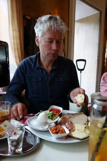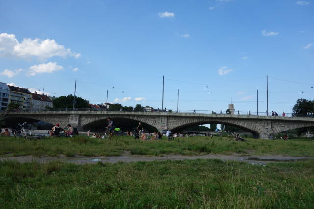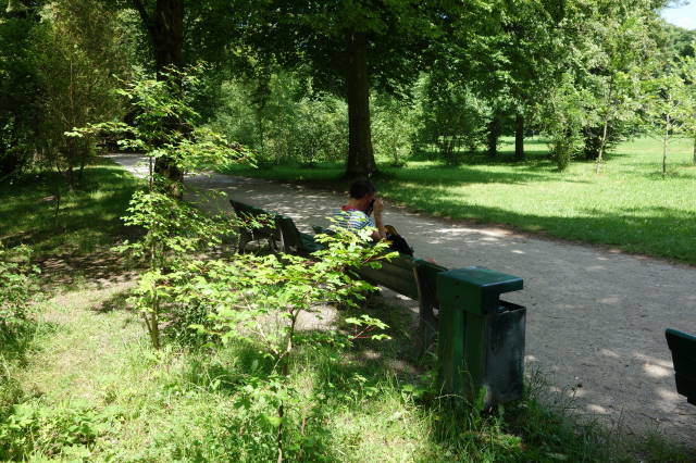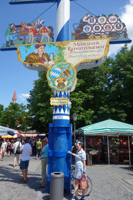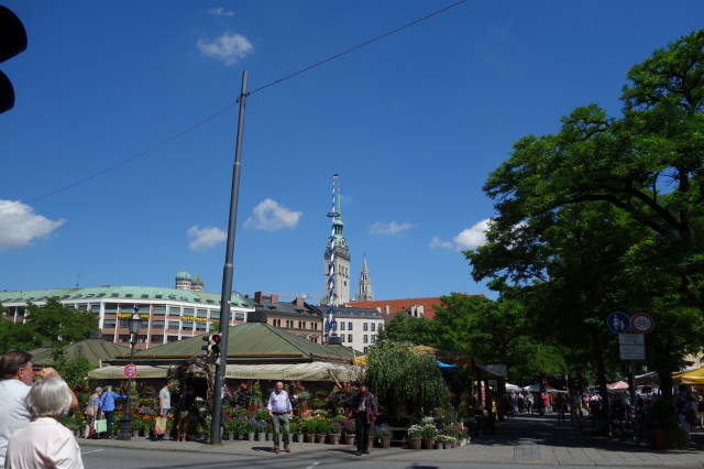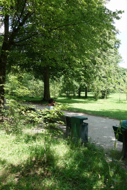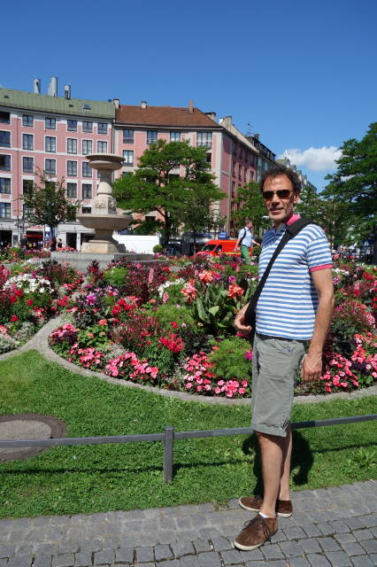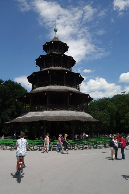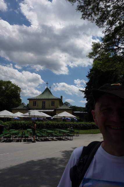 Frühstück im Café Baader. Es gibt Burritos und auch French Toast mit frischen Früchten. Die Second Hand Läden haben zu bis 13 Uhr. Am Gärtnerplatz vorbei. Die Häuser sind Rosa und die Bepflanzung entsprechend. Mit Michi fährt man nicht nur vorbei, sondern schaut genauer hin. Er weiß auch immer wie die Männer heißen, z.B. der gerade in Herrenhausen die Bepflanzung gemacht hat. Die krassen Farbkombis gefallen mir. Rot, Rosa, fast Neon, Lila. Ich sage das Ejakulat vom Springbrunnen ist mir zu wenig, auch proportional. Das sieht scheiße aus und dann: wenn wir an denen vorbei gehen sage ich ganz laut: genauso baust Du mir das in Hannover nach. Michi schlägt vor, Wasser der Fontäne einzufärben nachdem ich mir Schaum gewünscht hatte. Genial. Er meint, dann könne man sich das „Kein Trinkwasser“ Schild auch sparen und Recht hat er. Dann Viktualienmarkt Biergarten am Maibaum treffen. Klaus macht einen Tisch klar. Der Typ, der dort schon sitzt ist gesprächig. Klaus erklärt Lektion Biergarten, wie das entstanden ist, der Fremde stimmt zu und ich sage, dass sei doch ein bezahlter Zeuge. Die haben das Fluss Eis eingelagert um das Bier zu kühlen und dann Kastanien gepflanzt, weil die schnell wachsen und verschatten. Die Leute sind mit Bierkrügen gekommen und wollten sich Bier abholen, irgendwann hatten sie eine Brotzeit dabei und dann Bänke und so ist es bis heute. Man kann da sitzen und seine Brotzeit selber mitbringen, kein Verzehrzwang. Das ist schon super. Getränkeberatung: Russe ist ein Radler aus dunklem Weizen (gibt es aber nur als Liter), Riesenbrezel sieht klasse aus und der Schnittkäse wird gesalzen und gepfeffert. Der Fremde erzählt vom Tourismus durch die reichen Araber. Die kommen im August, wenn die Münchner im Urlaub sind und lieben die Stadt. Machen Sightseeing, lassen sich durch die Gegend fahren zum Starnberger See oder zu den Kliniken für Schönheits-OPs. Klaus sagt, die stehen auch auf airbnb wie wir, weil sie dann besser die Hüllen fallen lassen können und keine Angst haben müssen, dass fremde Leute reinkommen oder sie welchen begegnen, wie im Hotel. Er kannte einen Fahrer und der musste in der Mittagspause den Bus verlassen, dann machen sie die Fensterläden runter und enthüllen sich und sind unter sich und er wartet draußen und isst eine Leberwurstsemmel. Dann erzählt er seine eindrucksvolle Heiner Müller Geschichte. Er hat eine alte Freundin aus der Tanzschule in Regensburg, Bettina, in Bayreuth getroffen und die wollte ihm ihren Mann Heiner vorstellen. Die erste Inszenierung Anfang der 80er und er hat den Vorhang geschoben im toten Winkel, erst der Applaus von 2000 Leuten für die Sänger und dann die ganzen Schwarzen und die Buhrufe. Er hatte eine Ganzkörpergänsehaut. Er hat Heiner dann mal gefragt, wie man damit umgeht, wenn man 2 Jahre dafür gearbeitet habe und der meinte, zigarrenpuffend, er solle es nicht weitersagen, aber sie wollen provozieren und gar nicht gefallen und dann der 90 Minuten Applaus nach seinem Tod für dieselbe Inszenierung mit 111 Vorhängen, die gekurbelt werden müssen und nach 5 x muss man den Techniker austauschen. Wir sehen uns in einem Monat in Bayreuth. Dann ist Sommernachtsfest in der Eremitage und er hilft. Seine Tochter macht erst mit 20 Abi, also kommt das noch. Ja, Augustinerkeller ist super und hier gibt es einen neuen Riesenladen mit italienischer Feinkost Eataly heißt das. Ist Kette, war in NY auch angesagt. Wir verabschieden uns. Englischer Garten. Viele Gänse, eine knallt Stephan ins Fahrrad. Hier kann man deutlich besser radeln als im Central Park, wo alles verboten und reglementiert ist, weil ja bekanntlich so viele Fußgänger von Radfahrern überfahren werden. Hier ist schon europäische Anarchie und das lobe ich mir, sonst kann man sich das Radfahren auch sparen, der Spaß geht zumindest flöten. Der englische Garten ist schön. Wir liegen auf dem Rasen und schauen in die Bäume. Ich pirsche mich an Michi ran, der bei dieser Reise fotografiert. Die reinste Tierfotografie aus dem Gebüsch und so. Dann eine Runde Mahjong am Chinesischen Turm, weil es gut passt. Ich habe die Papiersteine in meine Teeverpackung gemacht und das ist jetzt megapraktisch für unterwegs, weil man auch ohne Tisch spielen kann mit einer Zeitung und 4 Bänken. Die Gastro ist ein bisschen Kantine und den Wurstsalat, den ich ausgesucht habe, essen wir nicht, hätte man es beim Radi belassen sollen und ich muss die heiß geräucherte Makrele schon alleine essen und ich bin essensmäßig noch nicht in Ordnung und kann nicht wie sonst, so dass das ganz schön blöd ist. Noch mehr Radler schmeckt nicht mehr. Ist wie Kaffeehaus der Wiener im Sinne von entspannter Gastronomie nicht wie: „wir sind eine Weinbar“ usw., sondern Gastfreundschaft hat auch was mit Ruhe und die Leute machen lassen in ihrem Tempo zu tun. Die Bayerische Band spielt auf und die kindlichen Melodien machen unweigerlich gute Laune, das Prosit auf die Gemütlichkeit nervt hingegen und es werden Volkslieder aus verschiedenen Ländern gespielt, was Michi ganz geschickt findet, weil alle es dann an irgendeiner Stelle toll finden zumindest die Sachen die sie wieder erkennen aus ihrem Kulturkreis und das dann auf Bayerisch zu hören, das würde bestimmt gut ankommen. Eine Afrikanerin erinnert mich an die Frau am Küchengartenplatz und ihr Hund scheint komisch zu sein, weil schon 2 Hunde haben angeschlagen und negativ auf ihn reagiert. Der Abräumer bleibt total interessiert stehen und glotzt auf unser Spiel, aber ohne zu fragen. Michi will in die Pinakothek und wir fahren mit Markus am Fluss entlang und durchs Viertel. Schöne Unterführung, gesprayt und beleuchtet, der Second Hand Laden mit den Aschenbechern erkenne ich am Inhaber und dem Windhund, der noch älter ist, nur noch auf dem Teppich liegt und sich nicht rührt. Dick, lebt der überhaupt noch? Gegenüber Espresso und mein Mann und ich diskutieren. Markus kommt wieder von seiner Runde, wir sehen uns