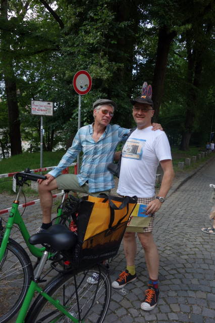 Holen Michi ab. Fahren durch´s nächtliche München auf dem Weg zurück, der kurz ist, an allem vorbei, HBH (und das steht für Hofbräuhaus und nicht Hauptbahnhof), Viktualienmarkt, Gärtnerplatz. Schön so herum zu fahren, auch nachts. Mal etwas andere Szene. Sommergewitter und wir fahren durch. Dann „Roter Hahn“, die Kneipe um die Ecke, macht ein Berliner. Sie schauen Polen gegen Portugal aber ohne Ton und zu Punkmusik. Irgendeiner ruft „Du Arschloch“ (wir sind mit dem Rücken zu den Bilder und frontal zu den Kneipenbesuchern, überwiegend Männer). Ich sage zuerst: Kasperle hört Dich nicht und dann: ach, das war Ronaldo. Ja, stimmt, der ist ein Arschloch. Michi will vielleicht nach Nymphenburg. Soll auch nur ca. 15 Minuten mit dem Rad entfernt sein, also ich bin dabei. Stellt fest, dass hier alles so sauber und bepflanzt ist. Ja, auch in so einer Punkrockkneipe sind die Aufkleber alle auf ein Fass geklebt und sonst ist alles clean und klebt nicht. Die Jungs haben lecker gegessen. Mir läuft das Wasser im Mund zusammen. Gut, Morgen ist auch ein Tag. Zuhause Blasentee und Wärmflasche. Blase mag schütteln, wenn ich die Hand drauf lege und vibriere. Ich stehe nachts ca. 12-mal auf um zu pinkeln, unterschiedliche Mengen und trinken und immer Unterleib wärmen.