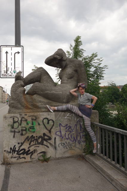 30.06. Im Zug, ich bitte einen Typen sich umzusetzen, damit wir einen Vierertisch haben. Nebenan 2 Rentner, die Frau ist jünger und fitter, Geschwister? Sie wirken nicht wie ein Ehepaar. Es geht viel um Feiern und irgendein Kind was sich an heißem Tee verbrannt hat, „aber frage nicht wie“ und 2 Wochen im Krankenhaus war. Der Typ erinnert an missgelaunte Fleischberge, Mundwinkel nach unten, ein großer Sack hängt unter dem dritten Kinn sieht aus wie Jabba the Hutt, der über dem Sudoku einschläft und an den Stift nicht ran kommt, den er auf den Boden fallen gelassen hat. die Jungs erzählen von der Weinbar, man wird gefragt wie viele Leute Alkohol trinken und von 3 müssen 2 Trinker dabei sein. Dann fragt man nach einem leichten Tafelwein und die Frau: da kenn ich mich nicht aus, frage den Kollegen. Kommt mit Glas wieder und welcher ist das jetzt: weiß ich nicht, frage den Kollegen und kehrt nie wieder. Warum nicht um 18 Uhr mit Klaus im Biergarten treffen und vor der Oper was essen. Ach so, dann sind wir schon in der Oper. Bei der Ankunft geht es mir saudreckig. Ich denke Blutsturz, kann nicht mithalten mit einem schnellen Schritt und als würde ich schlechter sehen, alles versagt, setze mich in der Bahn nicht hin und habe Paranoia wegen riesigem Blutfleck. Die Waden zittern in Wellenbewegungen. Die Monumentalbauten erinnern an Wien. Am Hauptbahnhof ist die Straße gesäumt mir Dirndlläden. Wer hat eigentlich gesagt, dass blau-weiß gestreifte Pullover allen Frauen stehen. Ich finde rote Karohemden eher. Wie oft waren wir in München. Hier sind krasse Sachen passiert fällt mir ein. Orgasmus wie ein Kerl im Hotel, dann Pillenumstellung am Gärtnerplatz, richtig legendär, die erste Einnahme. Wir versuchen gemeinsam nachzuzählen. Familienfest am Englischen Garten, mit Feininger im Englischen Garten verlaufen nach dem Tantris, Kutschfahrt mit Susanne im Englischen Garten, Lehel, Hotel war eine Empfehlung von Herrn M, Eisbach. War Paps damals bei der Eliteakademie? Dann zum Bayerischen Verdienstorden, anderes Hotelim selben Block wie das „Opera“ Muss 2006 gewesen sein mit WM. Apartment mit meinen Cousinen, Café Jasmin, englischer Garten mit Schnee. Dann Georgs Ausstellung, Hotel war Empfehlung von Claudia aus Wien, bei der Oktoberfestwiese um die Ecke, Psychiatrie gleich nebenan. Fahrräder, Dallmeyer. Dann im Diskoklo der Vermieterin kann ich endlich nachschauen und es war kein Blut, sondern Schweiß. Die Art der Flüssigkeit kann man nicht sagen, läuft mir seit morgens den Körper entlang. Vermieterin nett, hat mir einen Gutschein da gelassen für ihr Fitnessstudio, unterrichtet Pilates und da geht es um Core, das würde den Yogis manchmal fehlen sagt sie und mustert mich. Es gäbe eine Insel in der Isar, auf der alles erlaubt sein, aber es ist steinig und ohne Badelatschen schmerzhaft dort hin zu kommen. Bei den Haushaltsthemen schaut sie immer mich an. Das gibt einen Einlauf, bloß weil ich die Frau sei, das würde sie missverstehen. Wohnung gut, wir schlafen im rosa Mädchenzimmer, krasse 70er Tapeten, bestimmt nachgemacht, schöner Balkon und vor allem optimal gelegen, gleich neben der Isar und Frauenhofer Straße. Michi macht uns auf den großen Busen aufmerksam, der sogar den Rahmen sprengt. Das Klo hat zu wenig Wasserdruck und dafür das kleine Waschbecken zu viel und spitzt einen voll. Trotzdem: Ich bin happy. So happy es eben unter den Umständen geht.