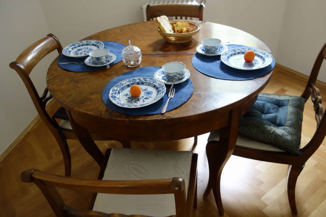 01.07. Dann morgens vor 5 ist es vorbei. Richtig praktisch wäre das Papiermahjongspiel, wenn man es aus dem Karton herausnimmt und nur die kleinen Spielkarten mitnimmt in einer Tüte und die 4 Bänke. Mails schauen, neue Blasentees, neue Wärmflasche, Baumwollstrumpfhose im Bett. Die Blutung ist versiegt, die Unterleibsschmerzen sind geblieben. Irgendwie schlafe ich noch mal ein und dann scheint die Sonne und es ist ca. 9. Ich habe geträumt von meinem Sportstudio, was ganz anders aussieht. Alle sitzen in einem Besprechungszimmer und der Kurs geht nicht los. Die Inhaberin, die gar nicht da ist, sondern nur die Bürofrau würde einen Nachfolger suchen und es ist Krisensitzung. Wir sollen sagen, wer vielleicht – auch übergangsweise- einen Kurs übernehmen kann. Soll ich mal Grace unterrichten? Die Zimmer sind verwahrlost. In einem stehen lauter Pflanzen von mir um die sich keiner gekümmert hat und ich denke, die müssen mal entsorgt werden. In einer wuselt es, lauter Käfer und der Raum ist übervoll mit Fliegen, die sich auf alles draufsetzten. Die Türzarge kaputt und da nistet oben ein Vogel drin. Wer könnte das Studio übernehmen? Irgendwie fällt mir wer ein, den ich fragen könnte. Ein Typ ähnlich meinem Betreuten Herrn Yoga? Der will doch immer freiberuflich arbeiten und Räume einrichten kann er auch. Dass es denen schlecht ging hätte ich wissen müssen seit das Telefon von Herrn Yoga abgestellt wurde, Stephan hatte Post, dass da ein Insolvenzverfahren läuft. Ich denke, dieser Traum hat damit was zu tun, dass ich gestern die eine Movenyo-Teilnehmerin auf der Rolltreppe am Sendlinger Tor gesehen habe. Dusche, nehme ein Handtuch von den Jungs, deren Zimmer noch zu ist. Wir hatten auch welche im Zimmer liegen, die ich übersehen habe. Die Gastgeberin hatte uns Extrahandtücher gezeigt in dem Schrank, falls die nicht reichen. Sie hat ein schönes, buntes Pferd. Heute Morgen bin ich noch in der Küche, erst Übermorgen werde ich den Balkon erkunden.