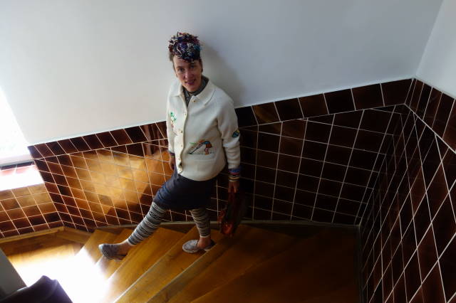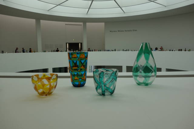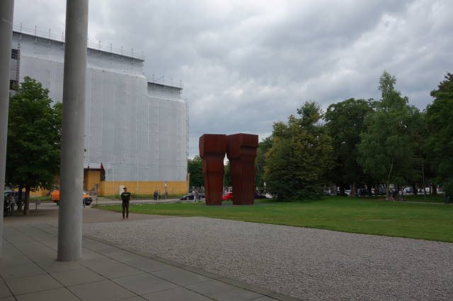 Traum: Gemeinsame Fernreise. Flughafen und der Flieger ist bereit. Wir warten noch auf eine Frau am Flughafen. Sie ist dann gekommen und nicht gleich zu uns, sondern erst mal noch mal woanders hin. Das macht man nicht, lästern welche die sie gar nicht kennen. Das kann ja heiter werden, wenn die Stimmung vorher schon so schlecht ist. Die Frau von unten aus unserem Haus will meinen Pass, habe 3 in der Tasche, Stephan muss mir meinen reingemacht haben und den von meinem Schwiegervater habe ich auch. (Hatte den Miteigentümern geschrieben, dass Markus spätestens am 11.07. mit dem Pflasterarbeiten anfangen will). Schlange und man kann sich Burger machen lassen. Der Typ neben mir wird gefragt und sie verstehen ihn nicht. Ich übersetze, er will einen Burger wie der Typ vor ihm, aber vielleicht noch eine andere Variante und ohne Käse. Es ist 8:20, ich bin verschwitzt. Auf dem Klo dringen Gesprächsfetzen von draußen an mein Ohr. Das bayerisch klingt fremd und bellend. Da würde ich lieber eine andere fremde Sprache hören. Es sind Schotten, die sich auf eine Radtour vorbereiten und mit den Fahrradsteppschuhen durchs Haus laufen. Die ersten 20 Minuten Radweg, ist dann nicht so anstrengend, gegen 15 Uhr sind sie wieder da. Wenn die Energy nach lässt, können sie auch was essen und wenn das Wetter schön ist, auch schwimmen. Ich tusche und denke, Innenhofszene wie aus Pumuckl, aber ohne Schreinerei. Ich warte ewig bis die anderen fertig sind, aber ich bin konditionell nicht in der Lage Druck zu machen oder es würde mir nicht bekommen. Ich tusche Karten z.T. auch mit den Foto aus Williamsburg. Michi hat sich für einen jungen schwarzen Mann entschieden aus dem ich eine Gärtner mache. Ich frage ihn ob er nur das Foto will oder eine Collage dazu, weil ich ihm da nichts aufzwängen will, nicht mehr als ich es eh schon tue. Abschiedsfoto mit Dackel. Quer durch die Stadt ins Café Jasmin. Herrlich 50er und ein bisschen Wien. Frühstück mit und ohne Wurst und wir nehmen Chia mit Waldbeeren. Echt viele und aufwendige vegane Sachen. Klingt alles lecker und wer sogar die Marmelade selber kocht, ist ambitioniert. Ich mache ein Hakenfoto für Sunla. Gleich Mittagessen geht nicht. Wir trennen uns. Pinakothek der Modern kostete heute nur 1,- €. Michi hat Recht, die Architektur ist sehr schön, war mir gar nicht so aufgefallen. Pippis Raum ist toll und als wäre man bei ihr zu Besuch und ganz nahe. Ich könnte länger verweilen, aber in 10 Minuten treffen wir uns an den Rädern. Die Murano-Glas Sachen aus den 50ern sind wie in Venedig und ich bin verknallt in das Zeug. Vor lauter durch fotografieren lasse ich Stephan warten, muss nach Gefühl gehen und habe weder Uhr noch Handy. Ich habe 40 Bilder gemacht und schaffe es kaum eine Auswahl für BM zu treffen und die Anzahl zu reduzieren. Ich liebe das Zeug. Das Sedlmayer (Empfehlung aus Fürth) hat zu, dann den Biergarten mit Selbstbedienung, Muffat Halle heißt das mh. Da hätte man open air Fußball schauen können. Das Obazdabrot packe ich ein in eine Serviette für den Zug und schmeiße es dann weg. Die Vermieterin verspätet sich und wir hauen ab, treffen sie unterwegs, aber ich gehe stumpf weiter, kein Interesse, hätte sie nicht wiedererkannt und habe keine Lust auf Smalltalk.