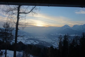 01.03. Grafenast – angekommen im ersten gemeinsamen alpinen Skiurlaub und nein, wir haben kein Fotoshop benutzt, es sah so unwirklich aus, der Blick von unserem Zimmer und die leeren Pisten gleich hinterm Haus