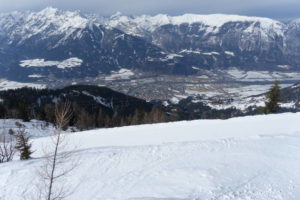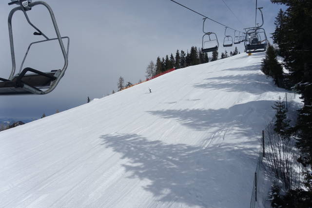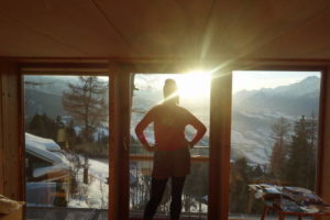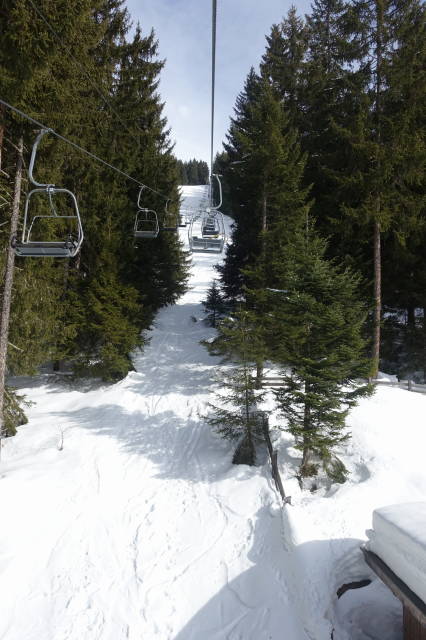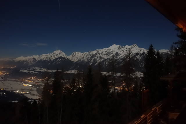 01.03. Grafenast – angekommen im ersten gemeinsamen alpinen Skiurlaub und nein, wir haben kein Fotoshop benutzt, es sah so unwirklich aus, der Blick von unserem Zimmer und die leeren Pisten gleich hinterm Haus