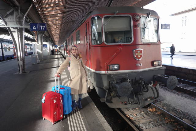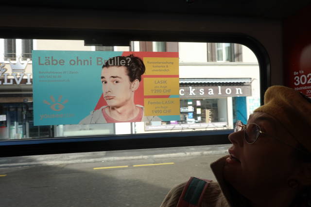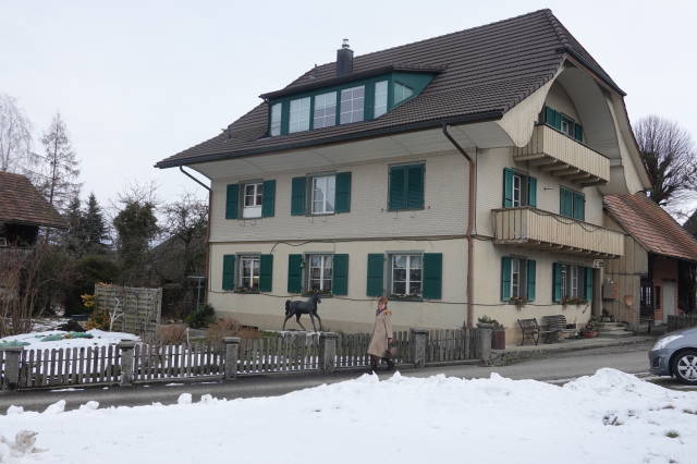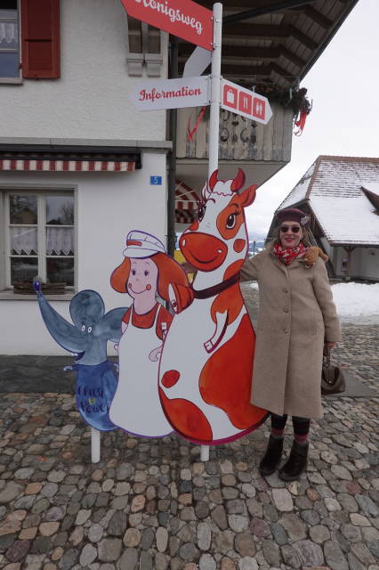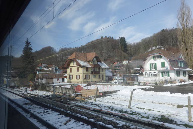 Das Geschäft gegenüber dem Bahnhof, ein Bastelgeschäft, hat die Auslage, die Sonderangebote, draußen stehen lassen. Ich denke, was, die haben sonntags geöffnet, aber nein, wir sind in der Schweiz.